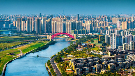 ③ 敷地内には約22畝のリバーサイドパークを計画しており、さらに約700畝の天府森林公園、約600畝の紅石公園、約3,000畝の天府公園、約4,500畝の鹿溪河エコゾーン、約5,100畝の興隆湖湿地公園など、合計1万畝を超える豊かな自然環境に囲まれています。