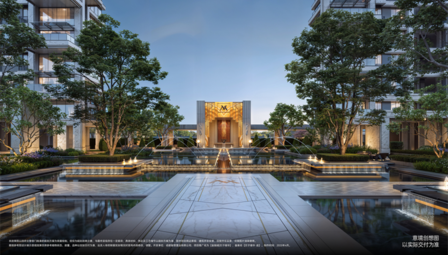 整體景觀借鑒皇家宮廷園林的造園理念和度假酒店的奢華水系動線,打造鎏光水鏡的無界豪宅,獻映成都首席宮廷莊園式私家園囿。